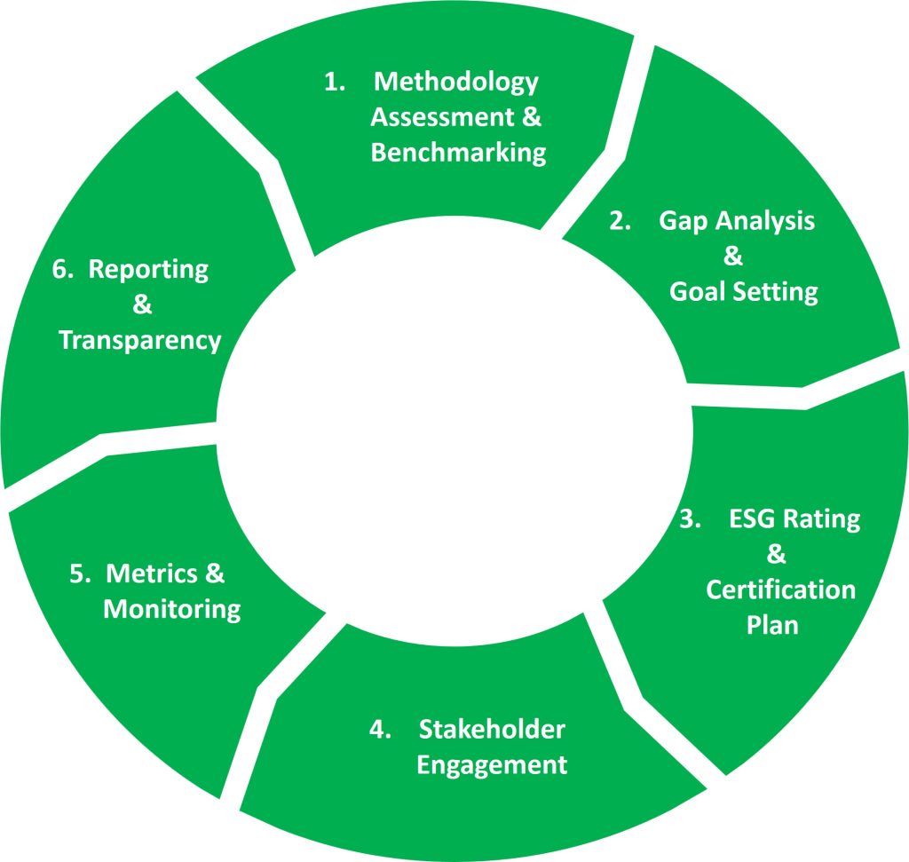 ESG Rating and Certification Plan: We develop a customized plan to improve your ESG ratings and certifications, addressing identified gaps and capitalizing on existing strengths. Our plans are designed for implementation in annual cycles, aligning with major ESG questionnaires and certifications to promote continuous improvement.
