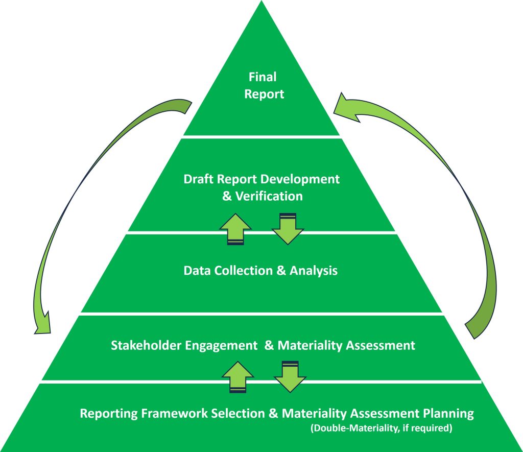Data Collection & Analysis: Meticulous data gathering and analysis underpin our process. We ensure the integrity and accuracy of the data, which forms the backbone of your ESG narrative and performance indicators.